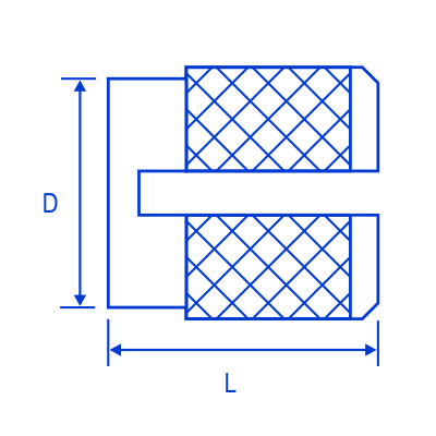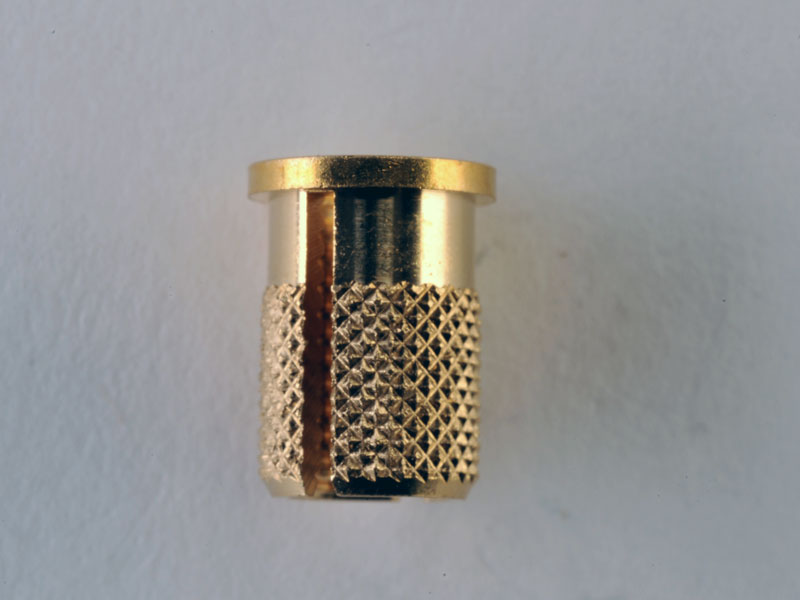 The FSUK EXP range is designed around a diamond knurl configuration with a slot which enables the insert to expand when the mating screw is assembled. This insert is designed more for Thermosetting Plastics although can be used in some Thermoplastics. Available in a headed and reverse head; it is designed with an anti-vibration feature to stop the screw working loose after assembly. It's designed to be pressed in cold into drilled or moulded holes.